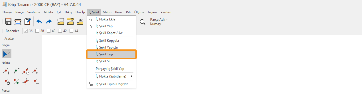 1.) Kalıp Tasarım ekranında, İç Şekil menüsünden İç Nokta Taşı