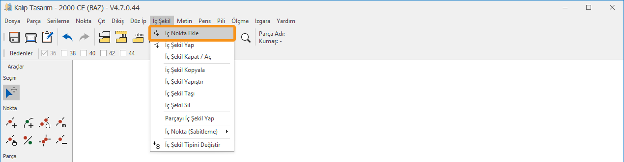 1.) Kalıp Tasarım ekranında, İç Şekil menüsünden İç Nokta Ekle