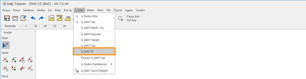 1.) Kalıp Tasarım ekranında İç Şekil menüsünden İç Şekil Sil