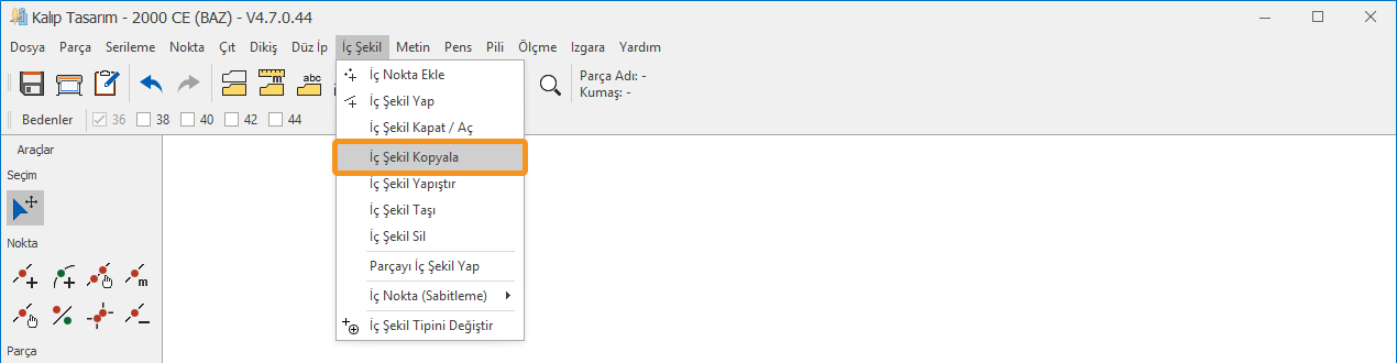 İç Şekil Kopyala/Yapıştır/Sil