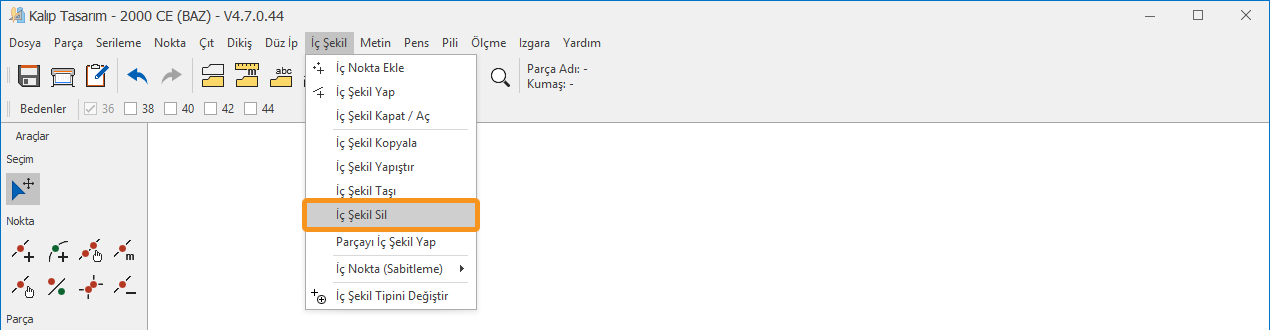 1.) Kalıp Tasarım ekranında İç Şekil menüsünden İç Şekil Sil