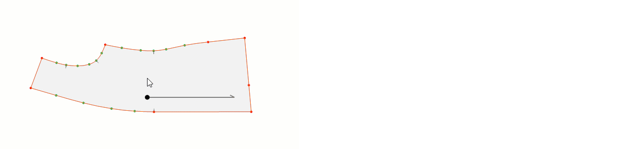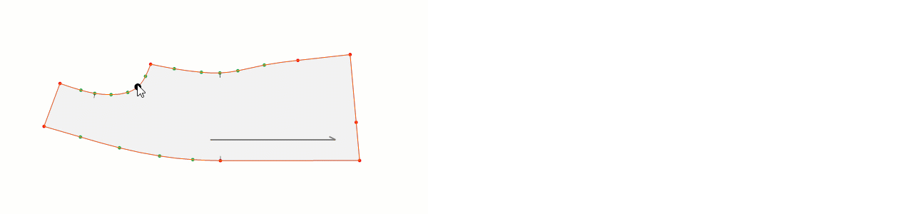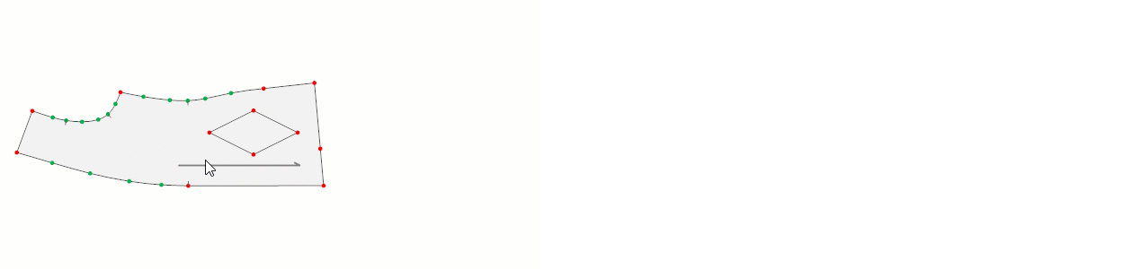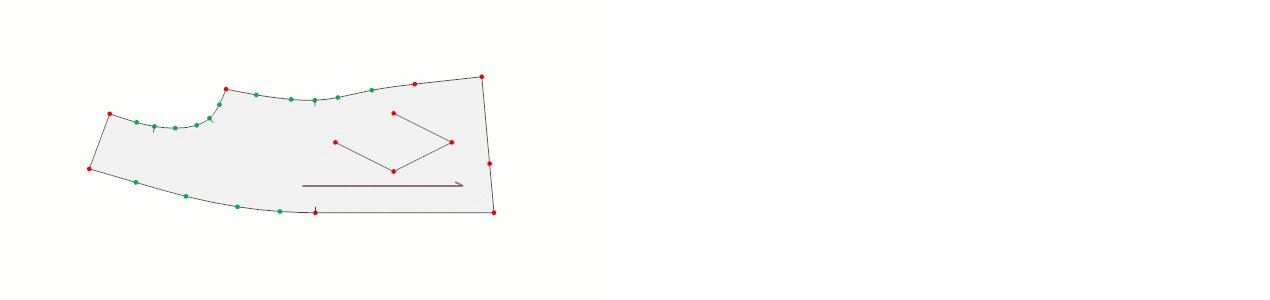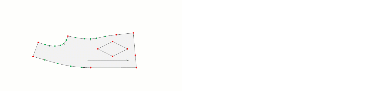 - Sol mouse ile köşe (kırmızı) noktası, sağ mouse ile kavis (yeşil) nokta eklenerek iç şekil oluşturulur.