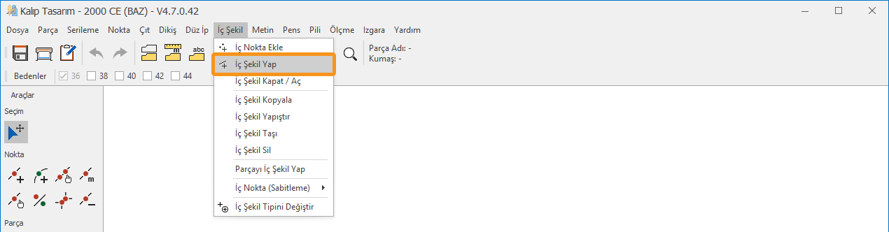 2.) İç Şekil menüsünden İç Şekil Yap