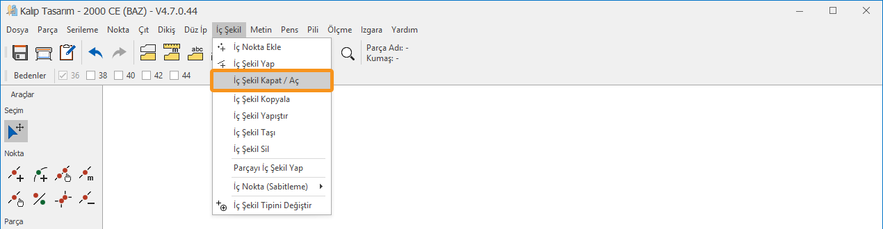 Kapatılan iç şekil, istenirse İç Şekli Kapat/Aç işlemi ile yeniden açılabilir.