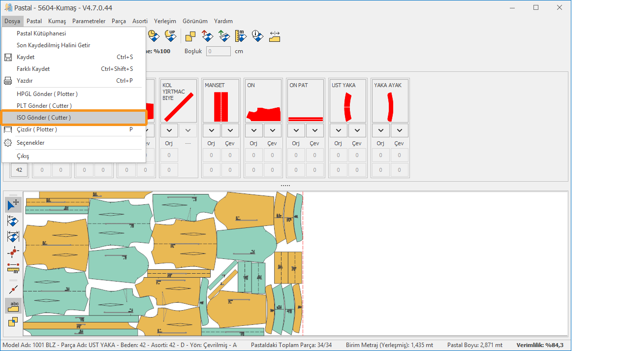 Pastal ekranında pastal hazırlandıktan sonra Dosya menüsünden ISO Gönder (Cutter)