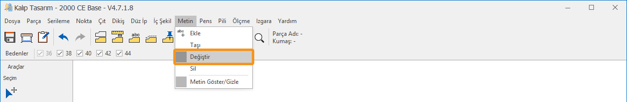 1.) Kalıp Tasarım ekranında, Metin menüsünden Değiştir