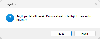 | Çizdir; Seçili pastal, çizim ekranına gönderilir ve otomatik olarak çizim ekranı açılır. |