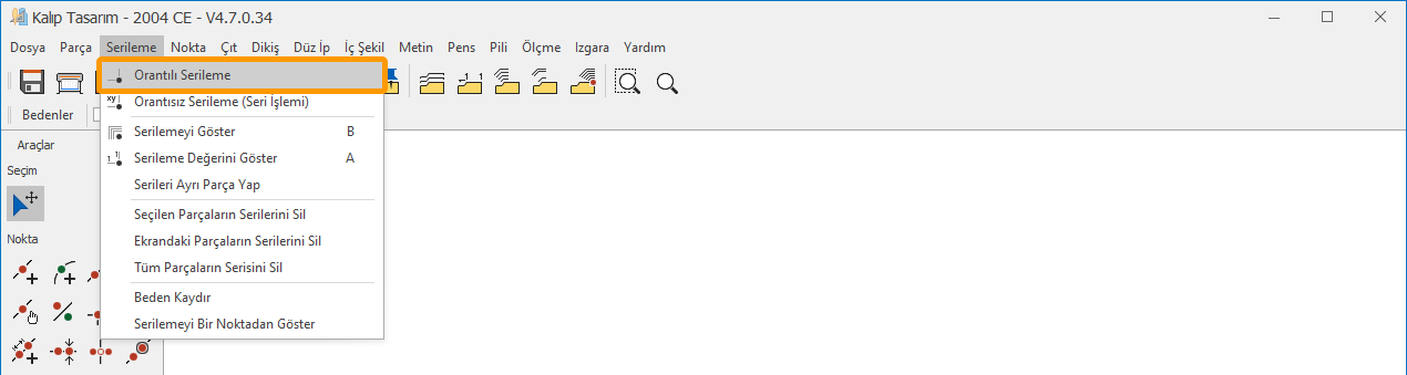 - Kalıp Tasarım ekranında Serileme menüsünden Orantılı Seri