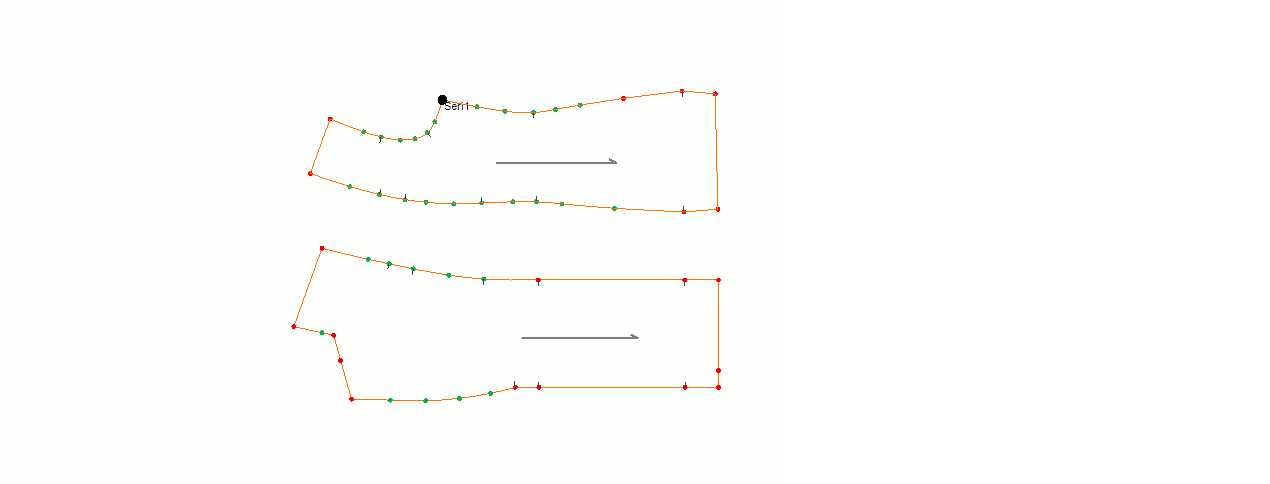 (Örneğin, tüm bedenler X ekseninde 0,25 cm, Y ekseninde 0,5 cm fark ile ilerlerken, 42 bedende X 0,5 cm, Y 1cm farklıdır.)