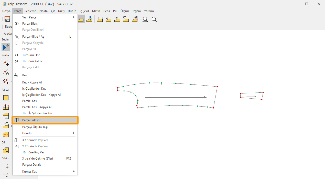 1.) Kalıp Tasarım ekranında, Parça menüsünden Parça Birleştir
