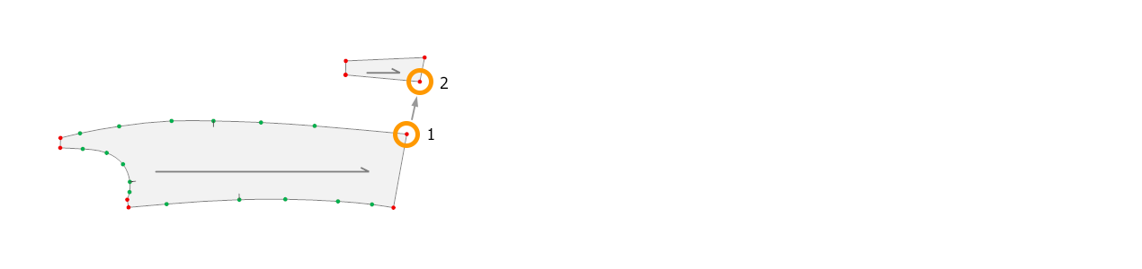 Birleştirilen yeni parçada, 1. noktanın seçildiği parçanın düz ipi varsayılan, 2. noktanın seçildiği parçanın düz ipi ise ikinci düz ip olarak atanır.
