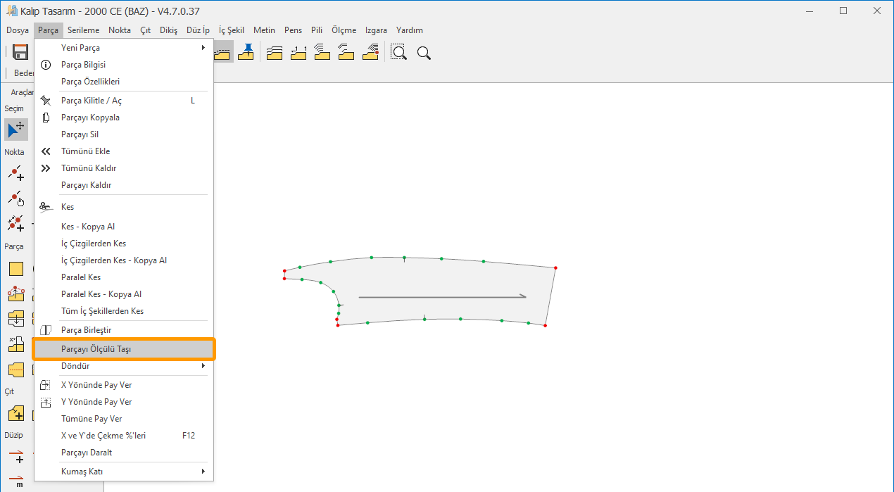 2.) Parça menüsünden Parçayı Ölçülü Taşı