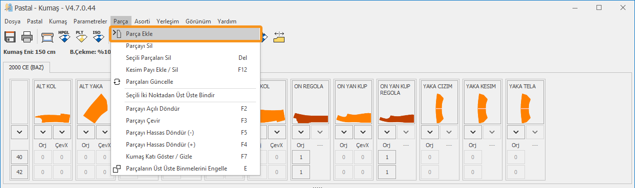 1.) Pastal ekranında Parça menüsünden Parça Ekle
