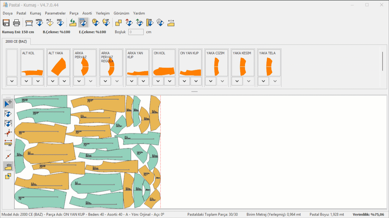 Otomatik pastal ve manuel pastal yerleşiminde pastala dahil edilebilir.