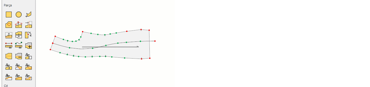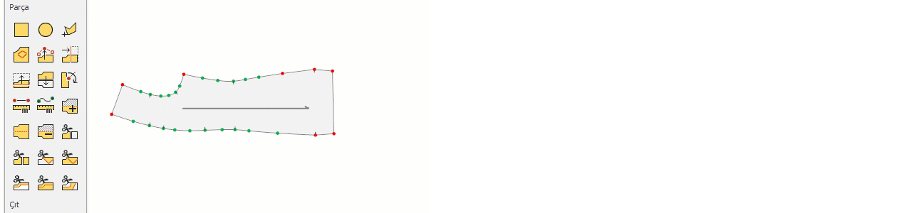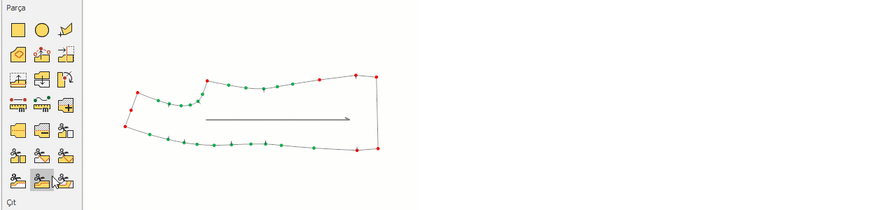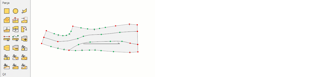 Başlangıç noktası seçildikten sonra, sol fare tuşu ile köşe, sağ fare tuşu ile kavis noktası eklenerek kesim hattı çizilebilir.
