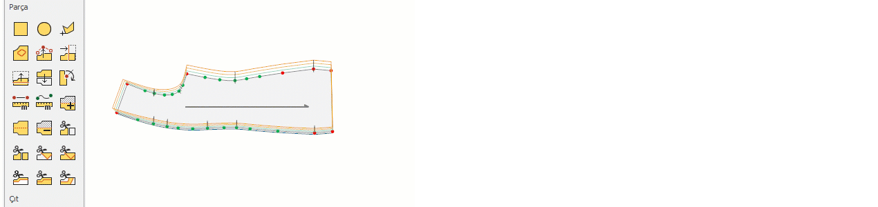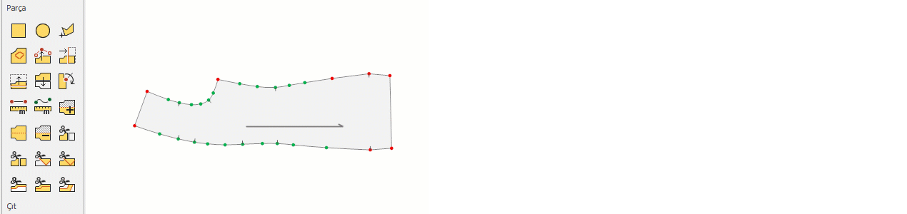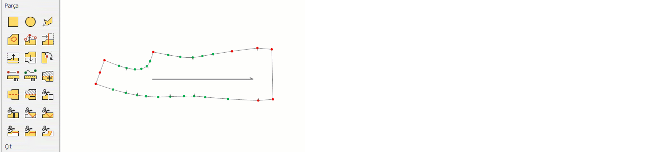 seçeneğine tıklanır. - Parça hattı üzerinde paralel kesilecek hattın Başlangıç ve Bitiş noktası saat yönünde seçilir.