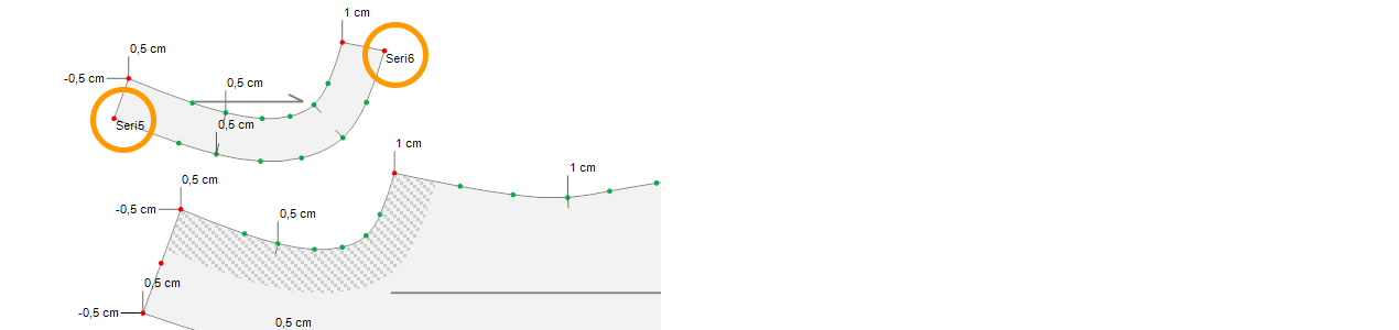 Parçada seri varsa, kes-kopyala işlemi sonrasında, iç çizgi hattının parça hattı ile birleştiği noktalar orantısız seri değerleri alır (Seri3 ve Seri4). Diğer noktalar ise kendi seri değerlerini korur.