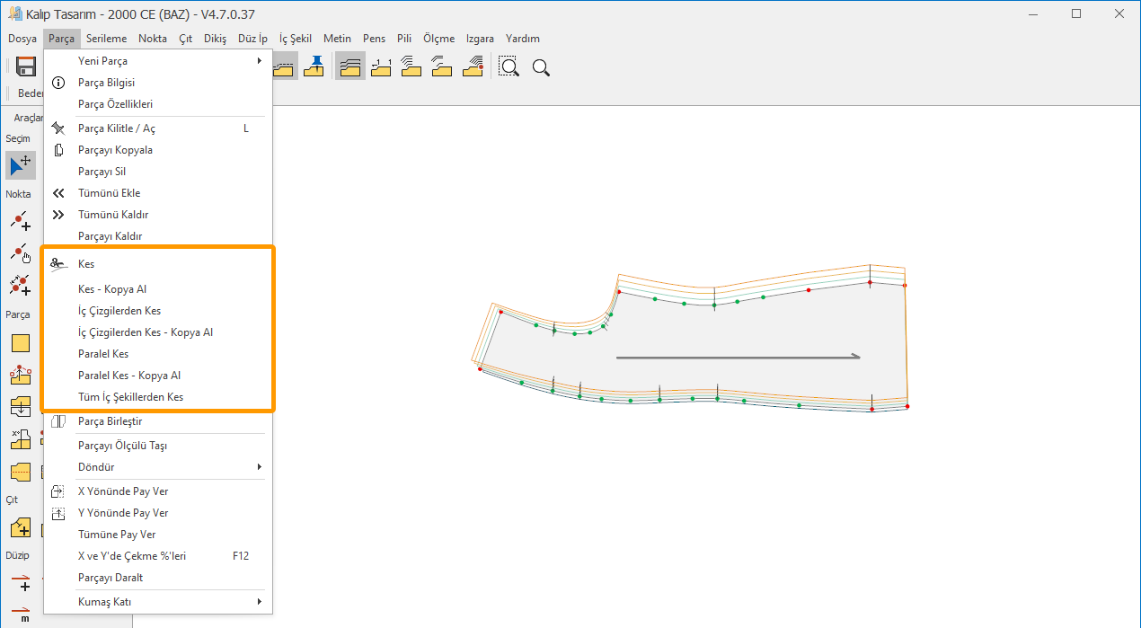 Kalıp Tasarım ekranında parçayı parça hattından veya iç çizgilerinden kesmek veya kopya almak için kullanılır.