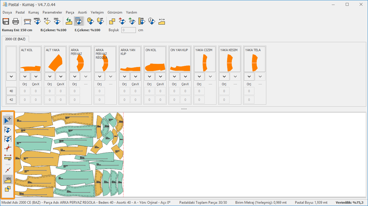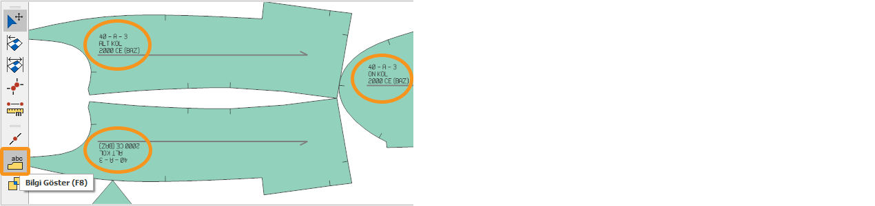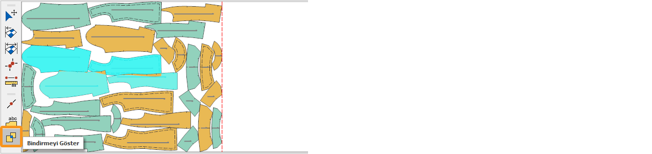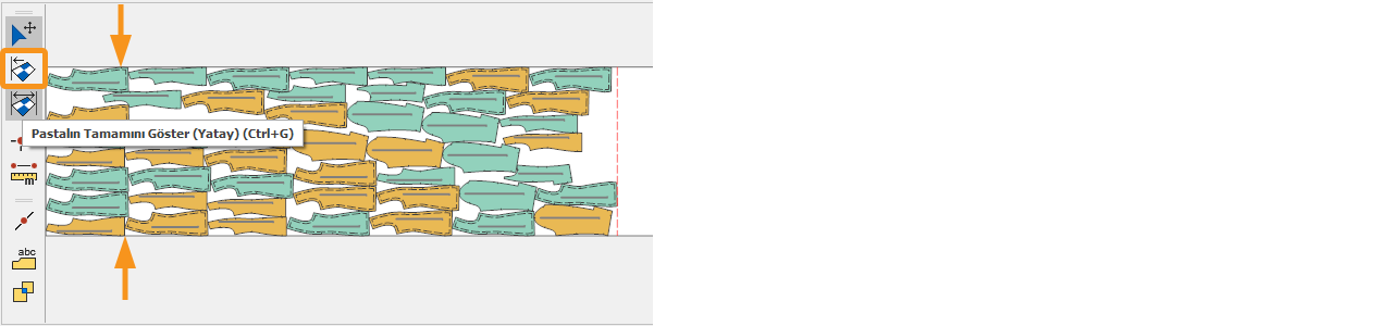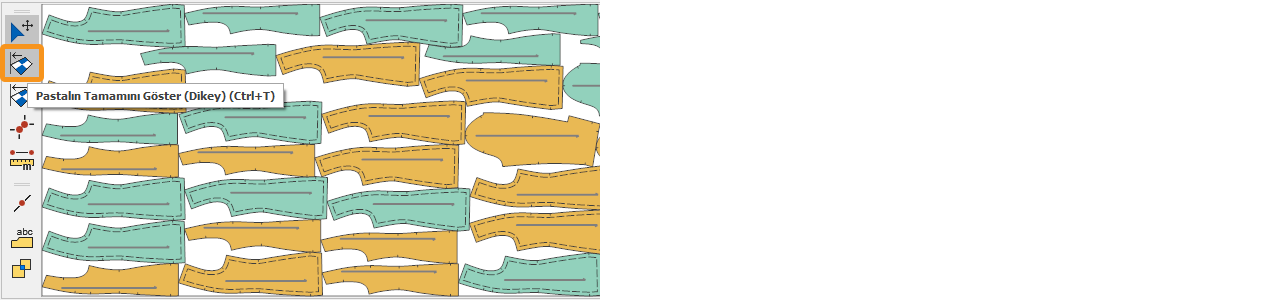 ikonu ile pastalı pastal enine (kumaş eni) göre gösterir. (varsayılan kısa yolu Ctrl+T)