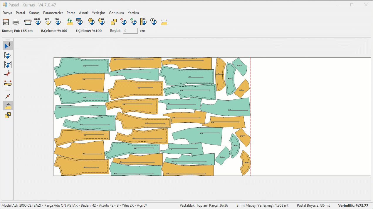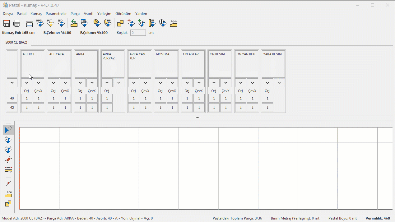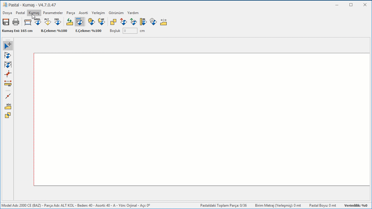 Yeni pastal oluşturma aşamasında pastala ilk girilen kumaş en değerini değiştirmek için kullanılır.