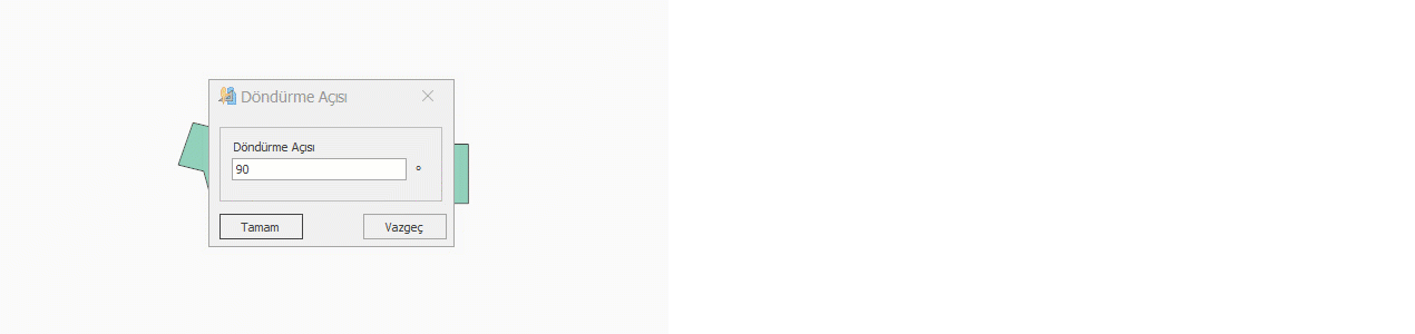 2.) Açılan pencereden istenen açı değeri girilir. (varsayılan değer 90° 'dir)