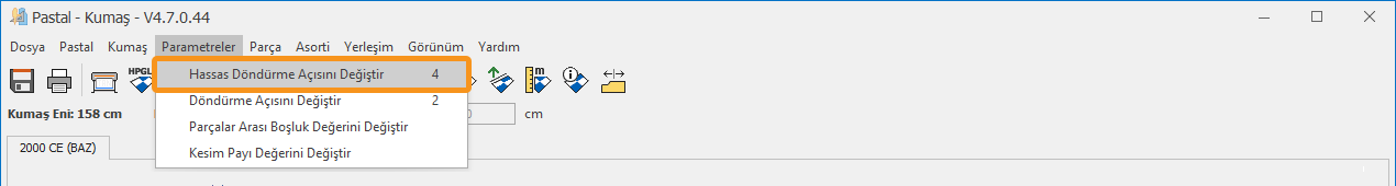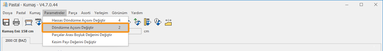 1.) Pastal ekranında Parametreler menüsünden Hassas Döndürme Açısını Değiştir