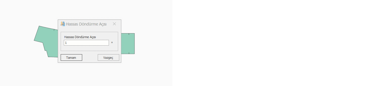 Pastal ekranında parçayı girilen açı değeri kadar saat yönünde ve saat yönünün tersine döndürmek için kullanılır.