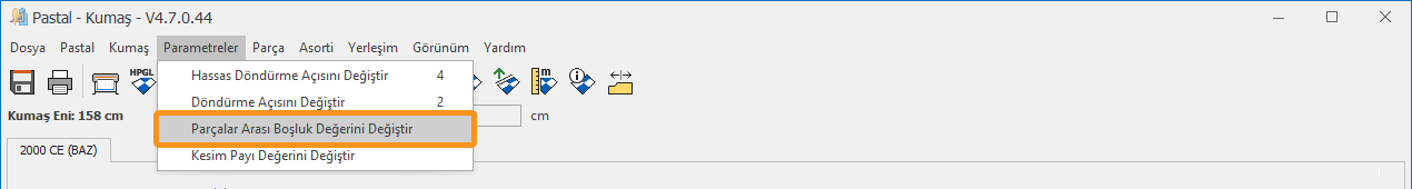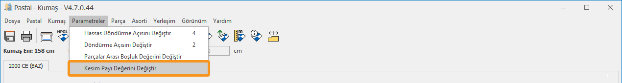 1.) Pastal ekranında Parametreler menüsünden Kesim Payı Değerini Değiştir
