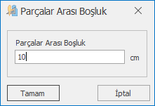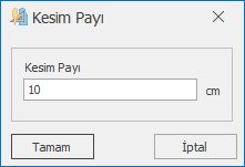 2.) Açılan pencereye kesim payı değeri girilir ve Tamam ile onaylanır. (örneğin 10 cm)