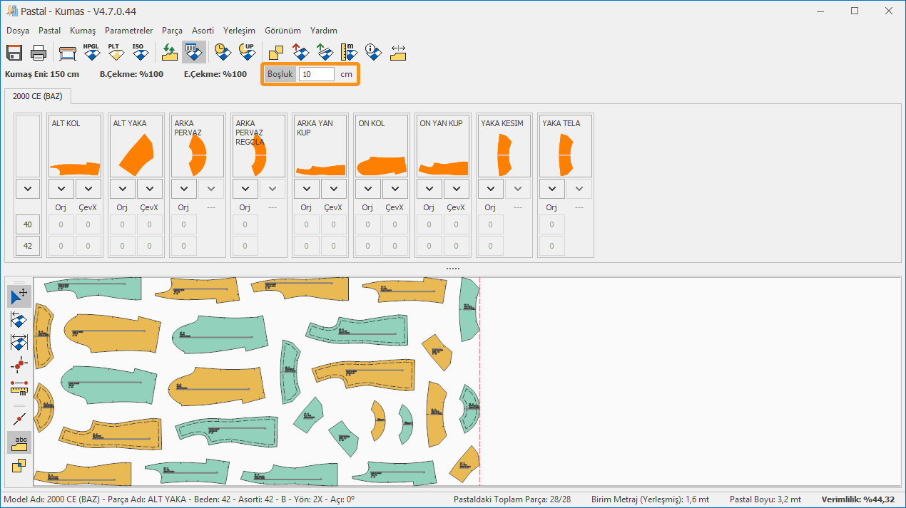Pastal ekranında manuel yerleşim işlemi sırasında iki parça arasına verilmek istenen boşluk değeri girilir.