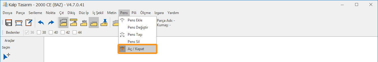 1.) Kalıp Tasarım ekranında, Pens menüsünden Aç/Kapat