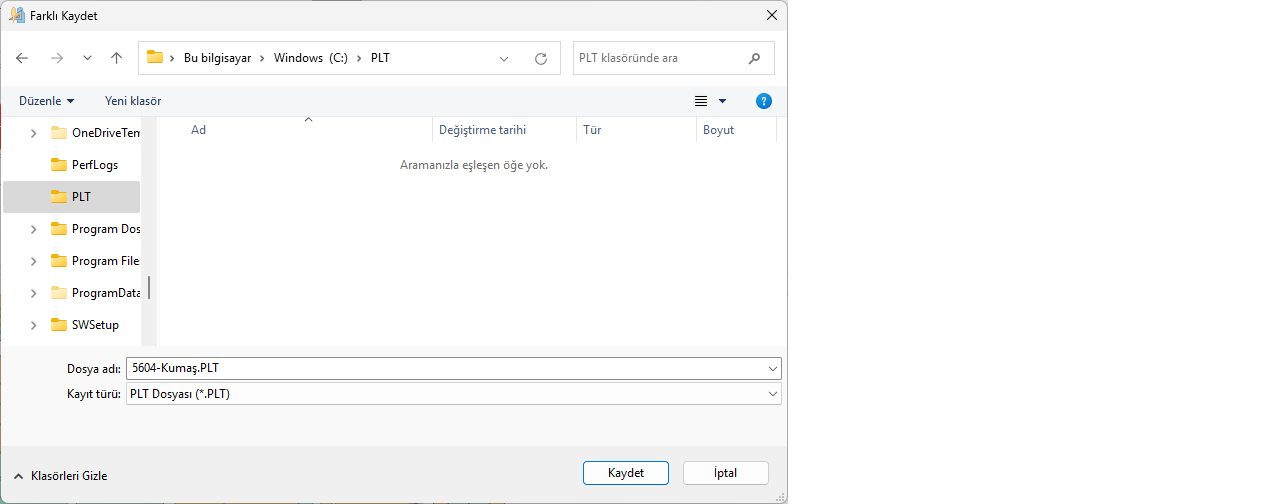 Açılan pencereden PLT dosyasının kaydedileceği klasör seçilir ve Kaydet ile kaydedilir.
