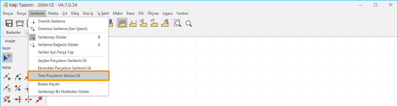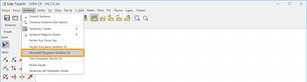 - Serileme menüsünden Ekrandaki Parçaların Serilerini Sil