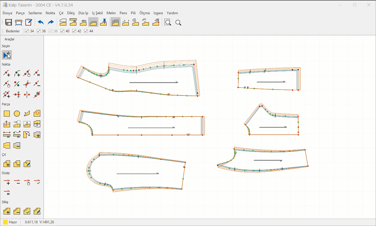- Kalıp Tasarım ekranında, silinmek istenen bir veya birden fazla parça Seçim ikonu ile seçilir. (Birden fazla parçayı seçmek için, istenilen parçalar mouse ile çerçeve içine alınır.)
