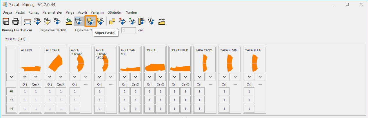 1.) Pastal ekranında pastal menüsünden Süper Pastal tıklanarak açılır.