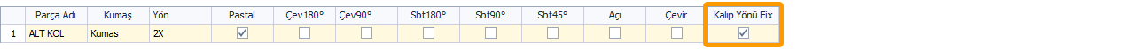 Kalıp Yönü Fix kutucuğu işaretli ise parça kalıp tasarım ekranında oluşturulduğu gibi gelir.