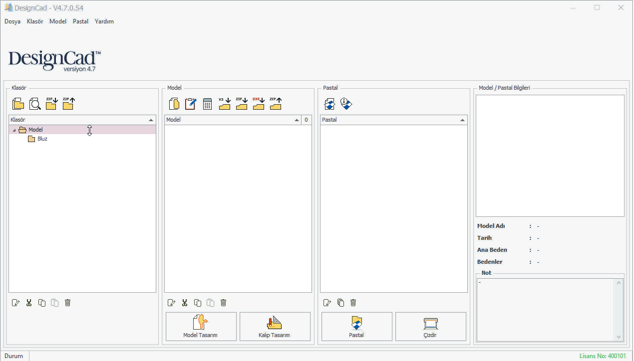 DesignCad versiyon 3’te hazırlanmış bir model klasörünü, versiyon 4.7’ye aktarmak için aşağıdaki adımlar izlenir: