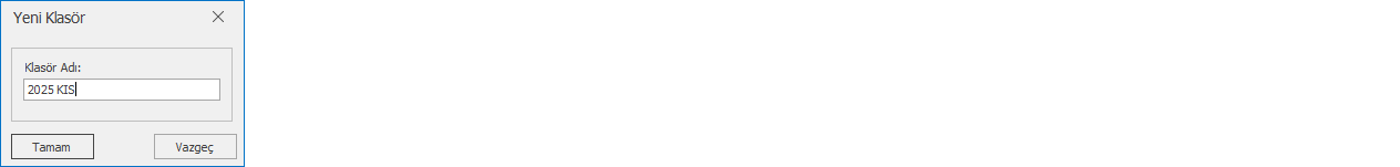 3.) Açılan pencereye oluşturulacak klasörün ismi yazılır. (Örneğin, "2025 KIS")