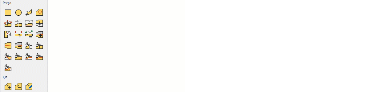 Kalıp tasarım ekranında yeni parça oluşturmak için kullanılır. (Dört farklı şekilde yeni parça oluşturulabilir.)